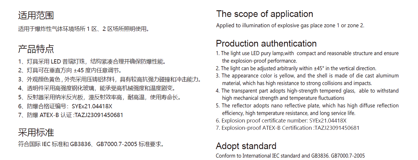 Standard: GB3836-2000, GB7000.7-2005