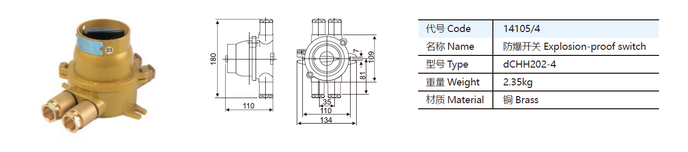 Brass Explosion Proof Switch Exd IIC T6 250V/16A | DCHH202-2