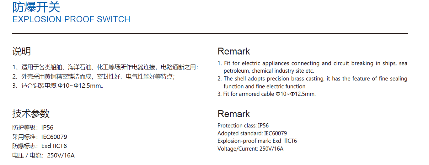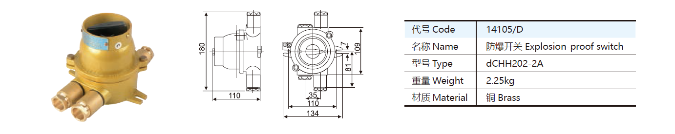 Brass Explosion Proof Switch Exd IIC T6 250V/16A | DCHH202-4