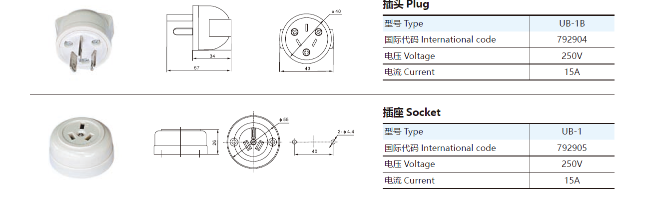 IMPA 792905 Marine Cabin Socket 250V/15A | UB-1