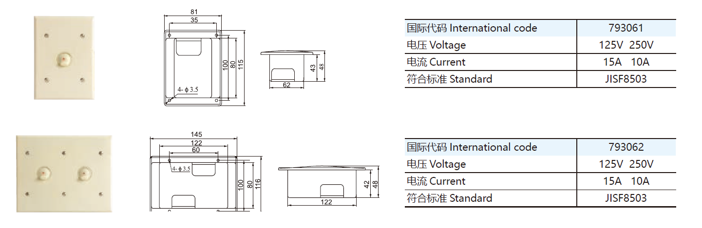IMPA 793062 Marine Cabin Switch 125-250V 10A/15A