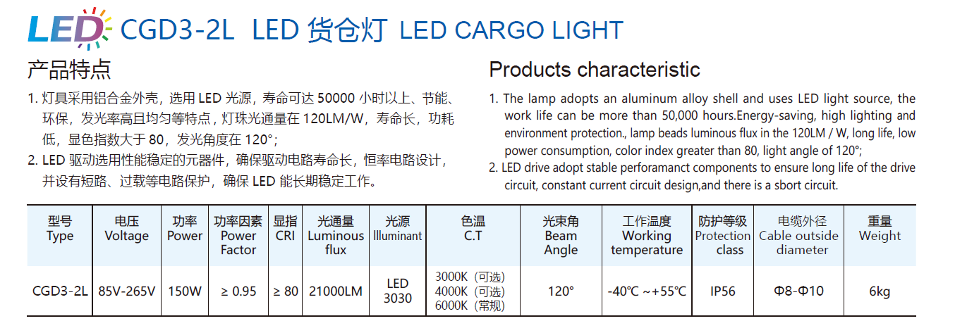 · Eco-friendly: Selection good LED light scouce, the work time can be more than 50,000 hours, enviroment protection. · Energy Saving:Light beads with high luminous flux of 120LM / W, with great color index and low power consumption. · Safety: Adope stable performance componets to ensure long life of the drive circuit, constant current circuit design and with short circuit protection.