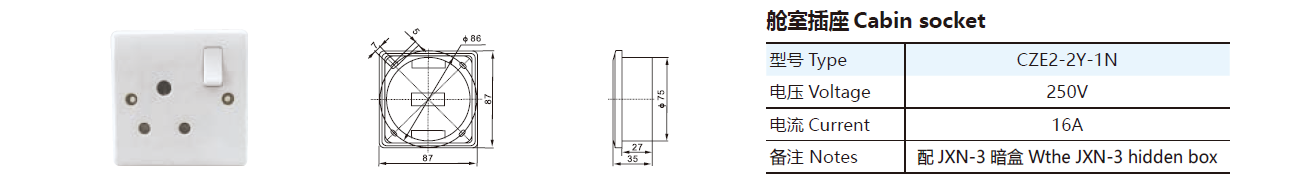 Marine Cabin Switch Socket 250V/16A | CZE2-2Y-1N