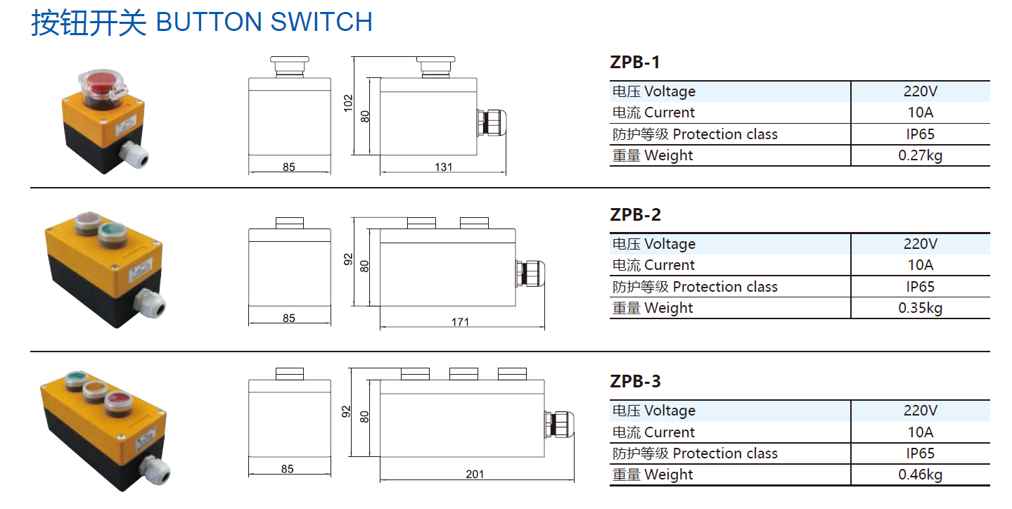 Plastic Button Switch 220V/10A 145x80x98mm | ZPB-2