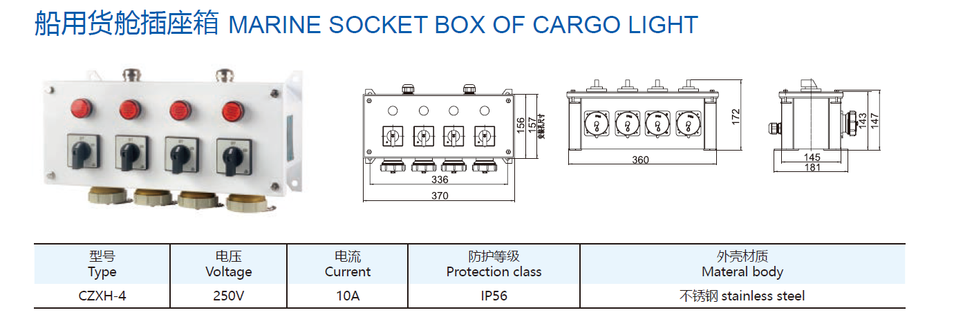 Stainless Steel Marine Cargo Socket Box 250V/10A | CZXH-4