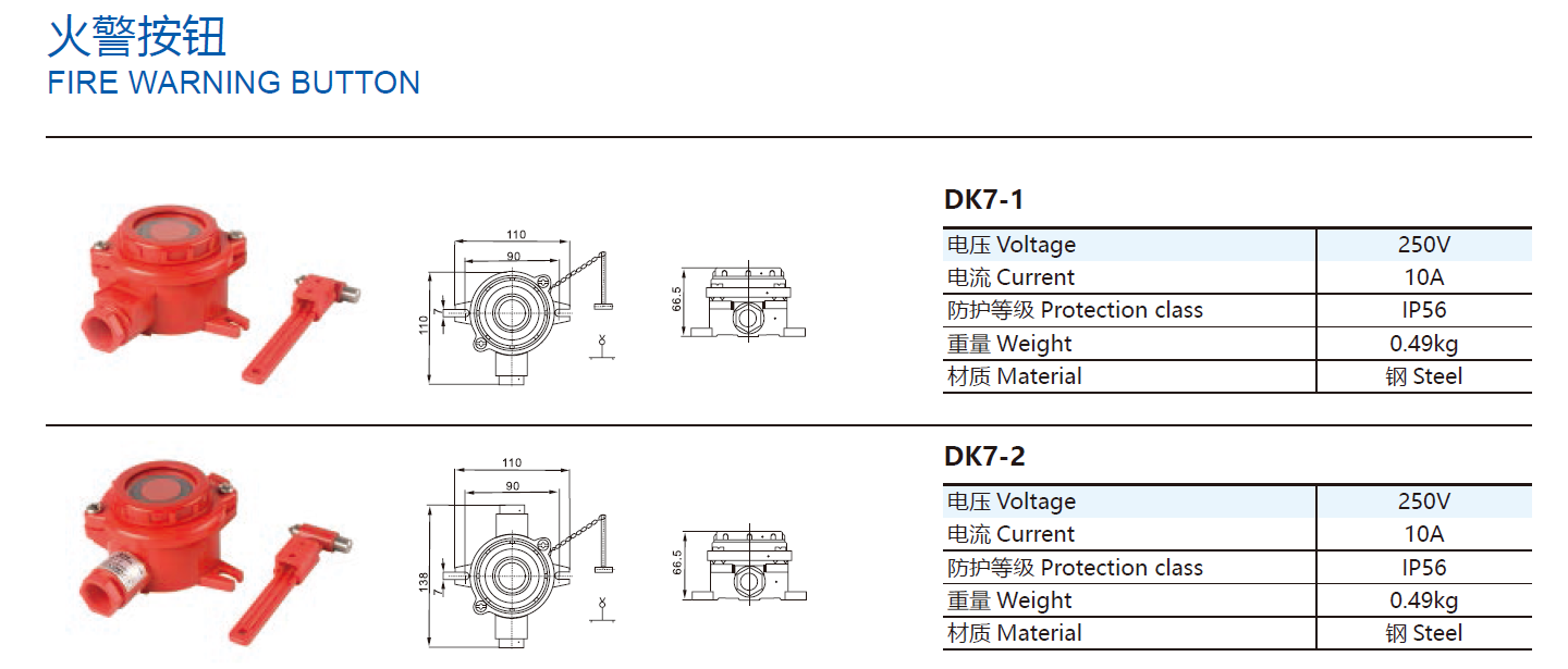 Steel 250V/10A Marine Fire Warning Button | DK7-1